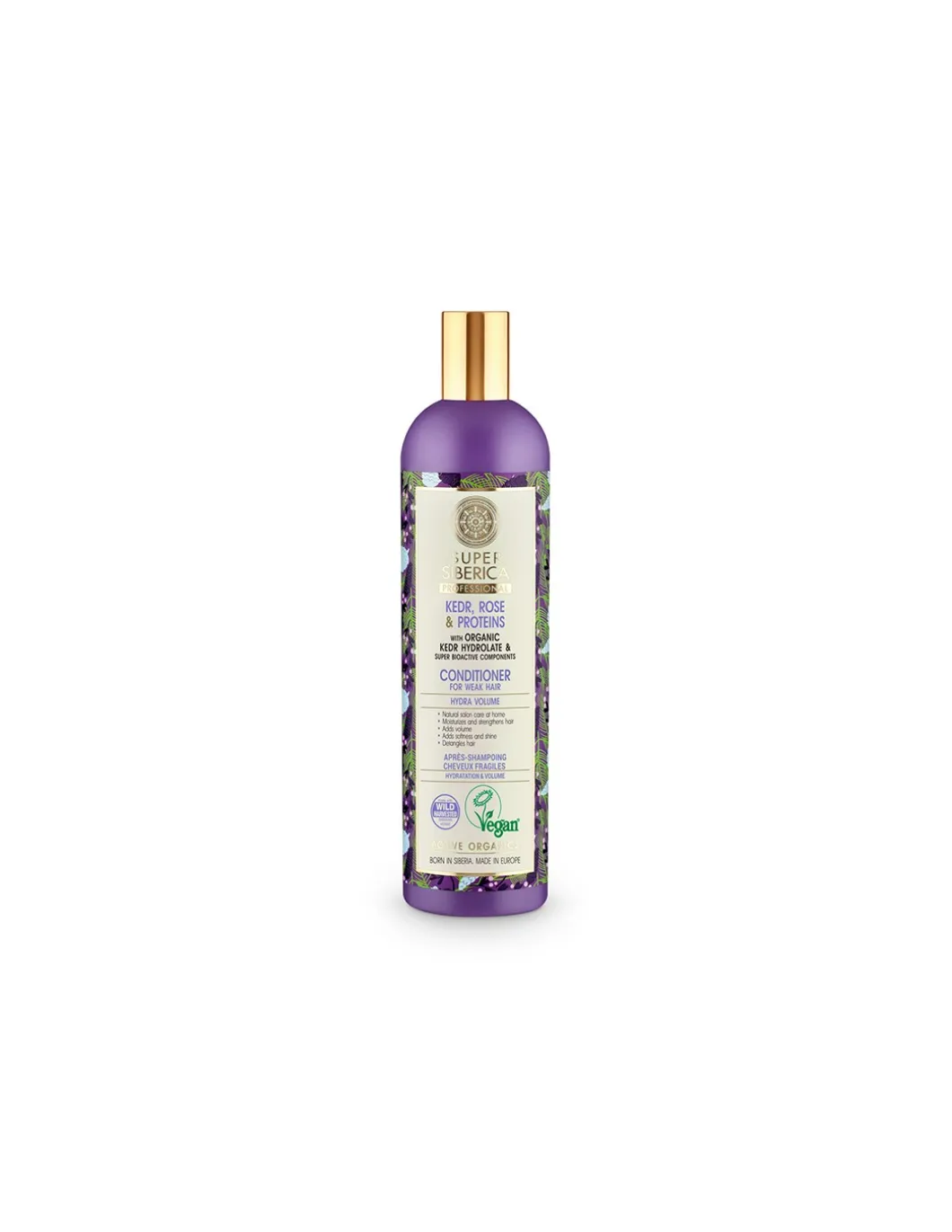 El bálsamo capilar profesional PINO, ROSA Y PROTEÍNAS limpia delicadamente e hidrata el cabello débil, le proporciona fuerza, energía, volumen desde las raíces y un brillo deslumbrante, y facilita el peinado.