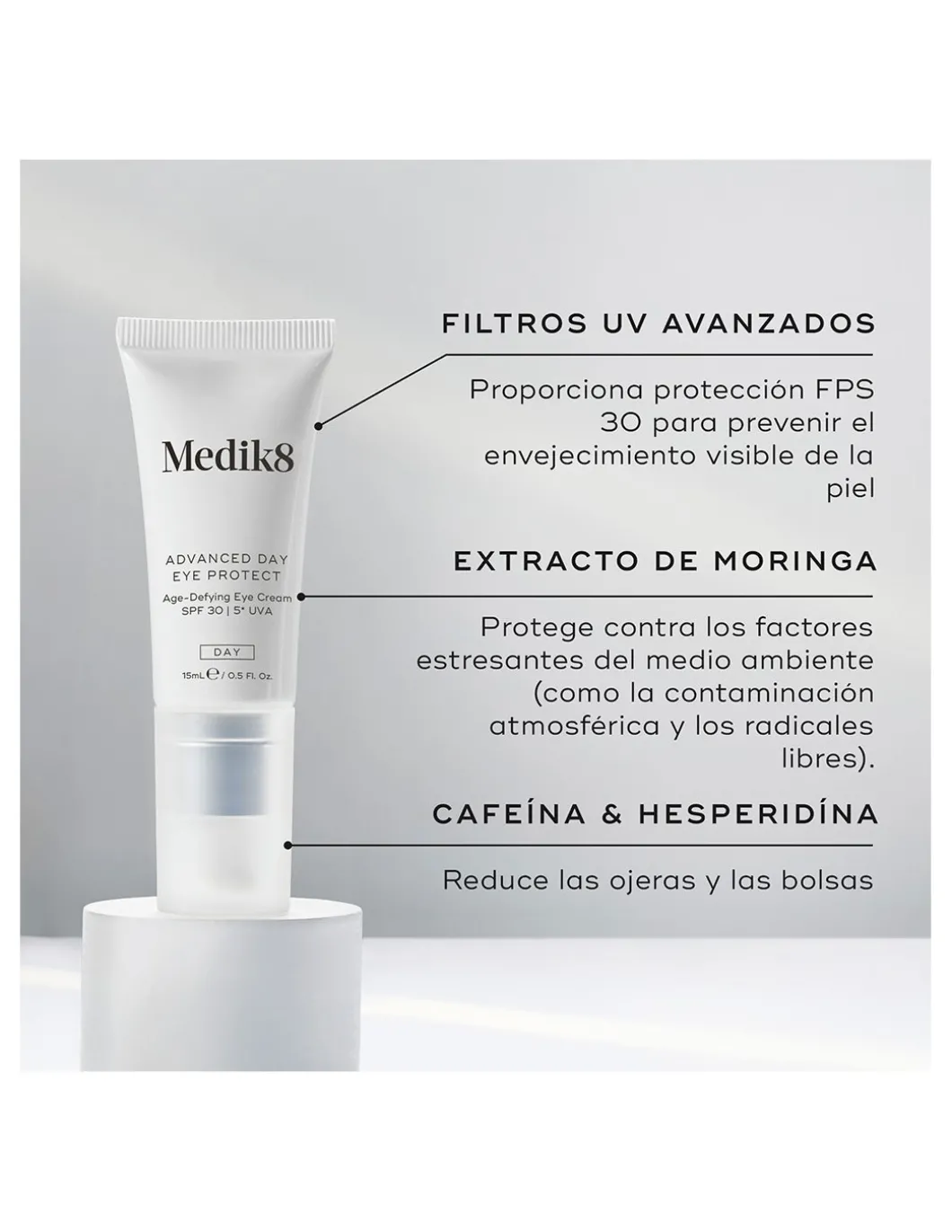A pesar del alto SPF, la crema para los ojos avanzada es súper ligera y tiene un acabado invisible haciendo de esta, la crema para los ojos perfecta para uso durante el día.