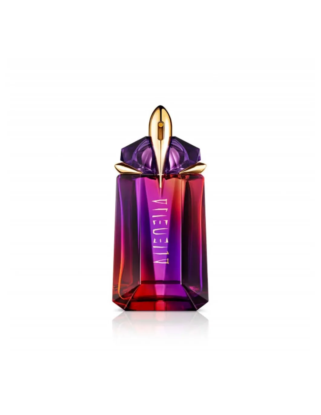 La icónica botella de Alien se encuentra lacada en ultravioleta tecnicolor, reflejando un rojo profundo y un naranja escarlata.
