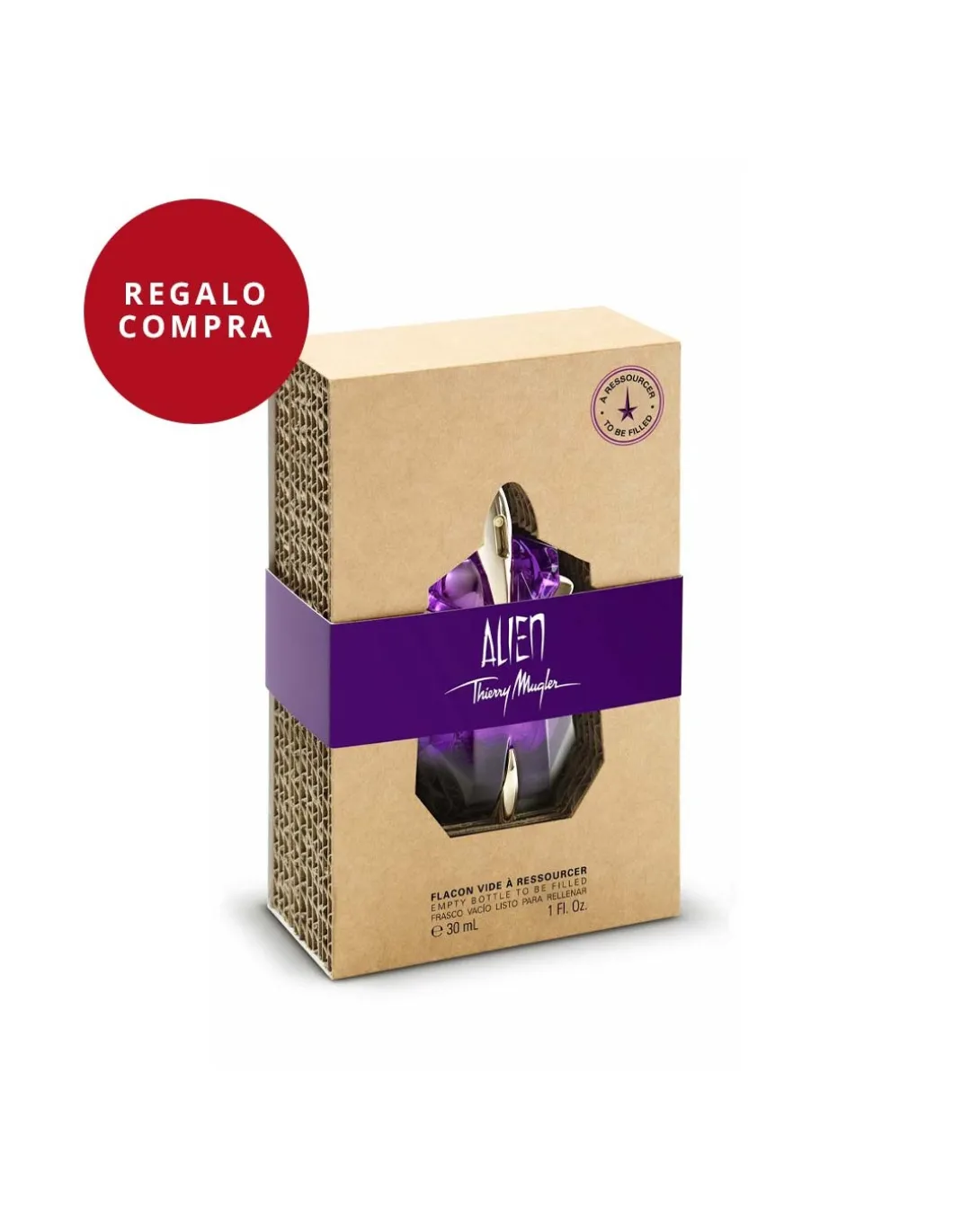 Un perfume de thierry mugler que transmite refinamiento, exquisitez y abundancia. Thierry mugler, ha creado para su perfume alien, más que un frasco un talismán. Se trata de un frasco tallado y marcado con oro, de color amatista intenso, en el que se manifiesta un diseño que ya nos advierte de la esencia tan mágica que contiene, un elixir extraordinario que nos hipnotiza e ilumina. Thierry mugler crea con su perfume alien un auténtico icono que desafía los sentidos y no deja a nadie indiferente.
