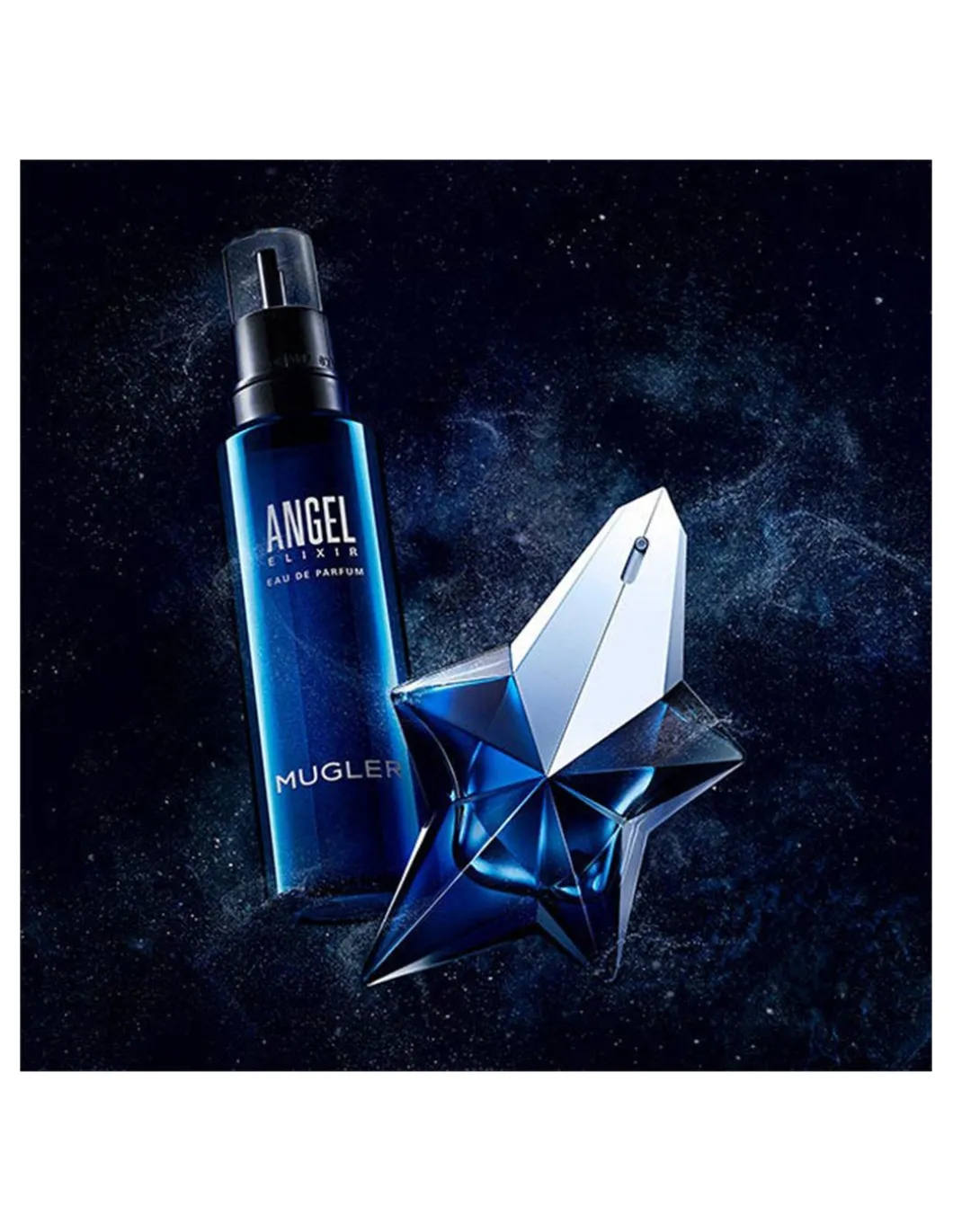 Una cautivadora estrella recargable de un azul profundo. Al recargar tu estrella de Angel Elixir, estarás actuando por el futuro, por un lujo más sostenible.