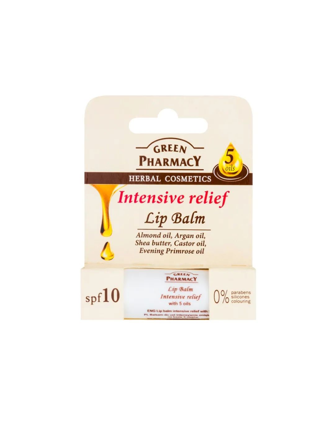BÁLSAMO LABIAL 5 ACEITES. ALIVIO INTENSO. Modo de empleo: aplicar el bálsamo sobre los labios, usar las veces que sea necesario.