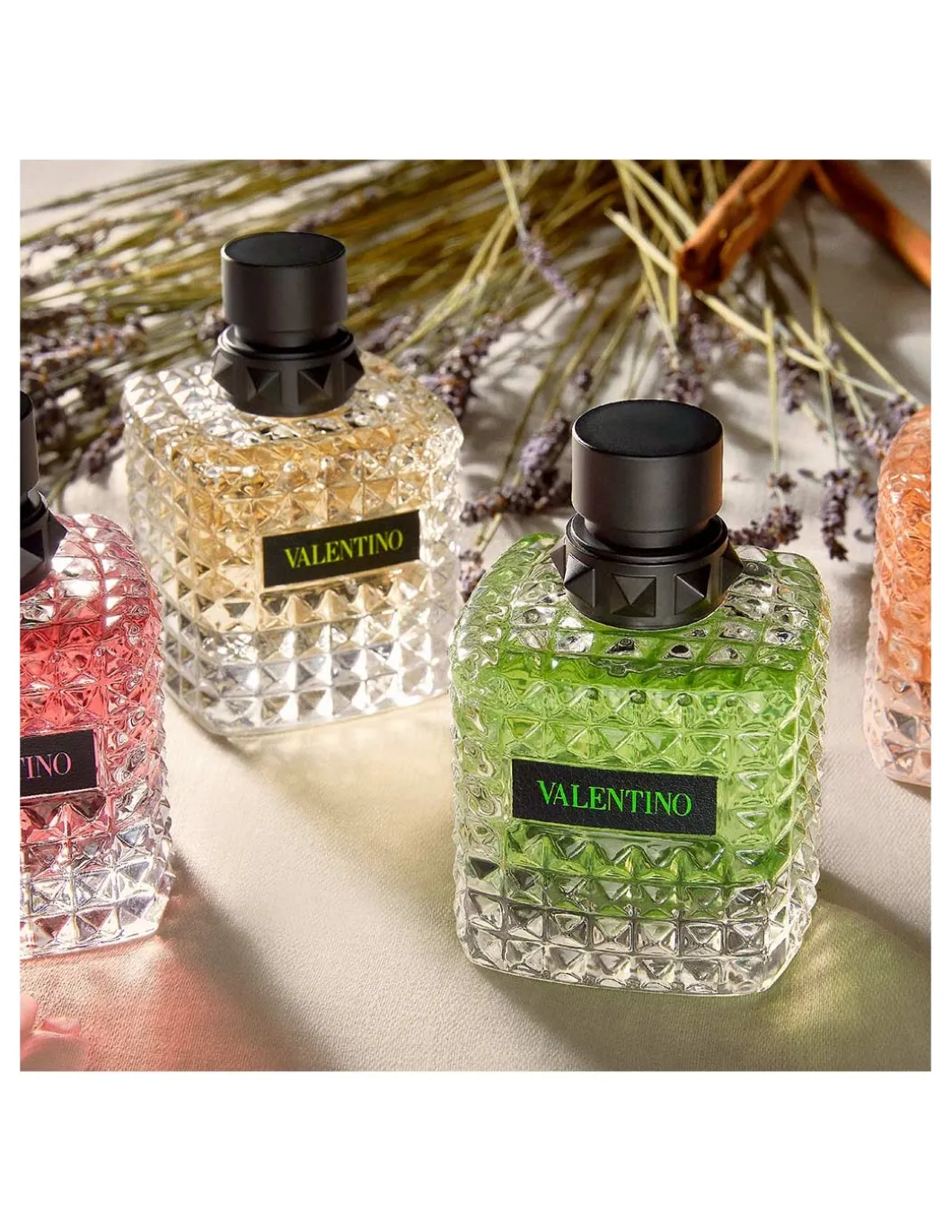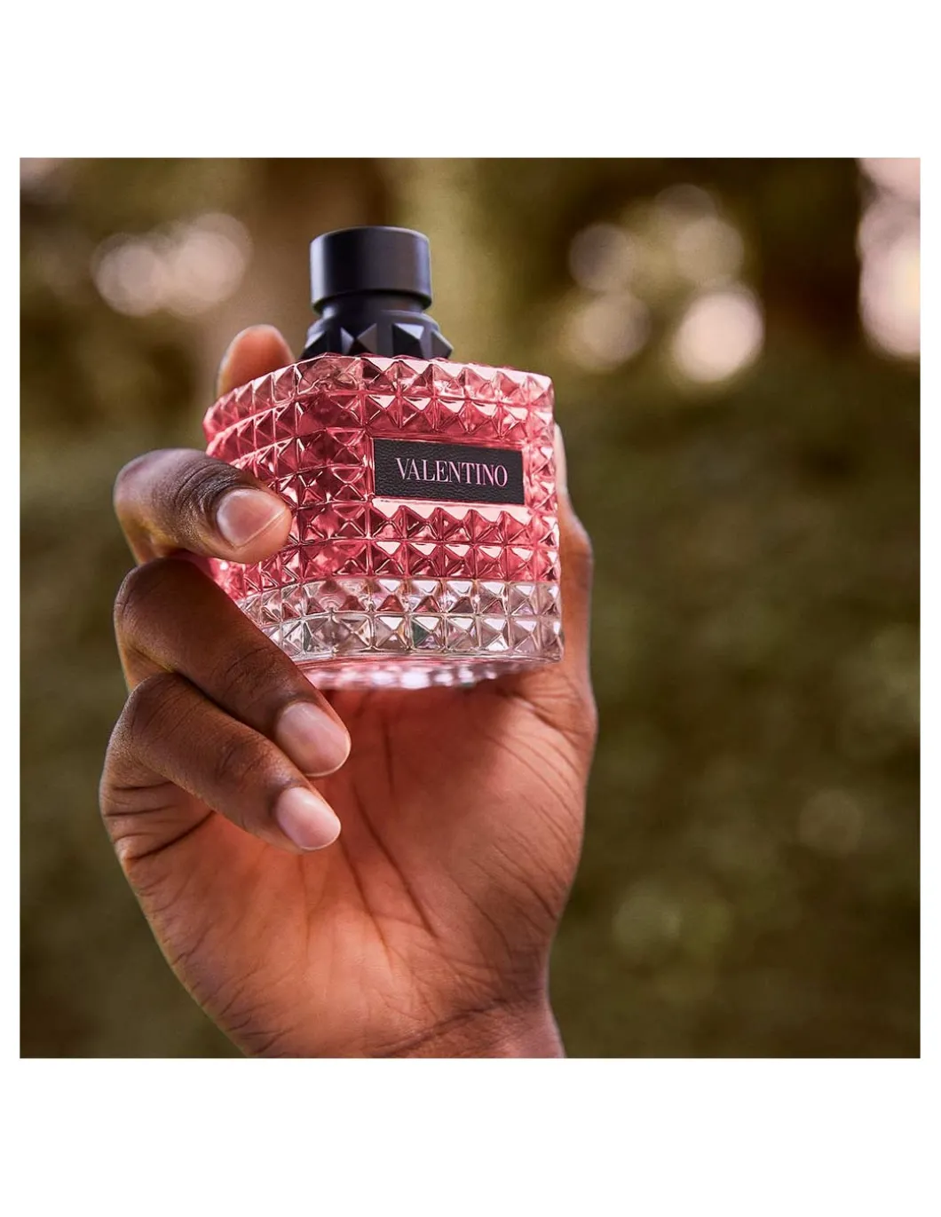 PALAZZO ITALIANO. Su frasco joya nos cautiva por su estructura con remaches tallada sobre un robusto cristal transparente, que nos deja entrever el femenino y romántico líquido rosado interior. Para este diseño, la firma toma inspiración en las tachuelas y stud siempre presentes en sus diseños textiles, y en los bellos palacios romanos, aunando de manera muy perspicaz el pasado, el presente y el futuro.