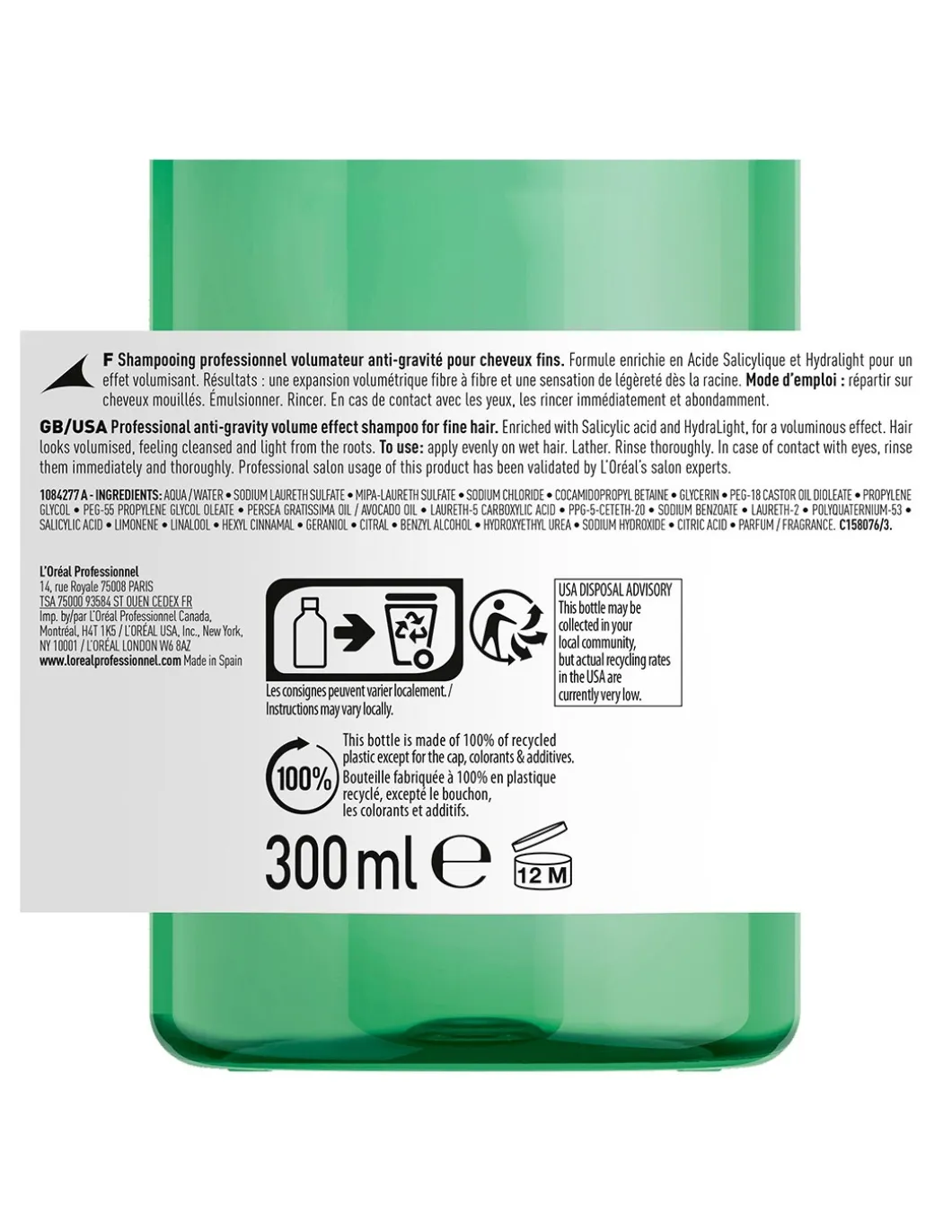 Champú Voluminizador anti-gravedad Volumetry, hidrata el cabello fino y purifica la raíz con efecto volumen durante 72 horas*.