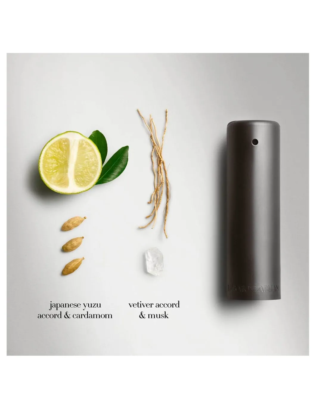 Estamos ante un aroma moderno y vibrante, y describe a un hombre activo, un hombre de hoy en día, amante de las innovaciones, seductor y altamente sencillo.En su lanzamiento y hasta el día de hoy, sigue siendo una de las fragancias más vendidas de Armani, y del mundo de la perfumería en general. Cuenta con un gran sequito de fans a sus espaldas.Su frasco destaca por su extremada sencillez a la vez que su originalidad. Un cilindro metálico de color negreo mate, recoge este increíble perfume en su interior. Estamos ante un caso que confirma que a ves menos es más.Familia olfativa Cítrico AromáticoNotas de salida: cítricas y frutales, como piña, mandarina, manzana, salvia, yuzu, bergamota, cardamomo y limón, encargadas de llenar de vitalidad a la fragancia. Notas corazón: destellos florales, suaves y elegantes, como ciclamen, nuez moscada, raíz de lirio, jazmín y rosaNotas de fondo: tonalidades amaderadas, de la mano de sándalo, haba tonka, ámbar, almizcle, musgo de roble y cedro. Modo de empleo: Aplica el perfume sobre el cuello, detrás de las orejas y bajo las muñecas con la intención de hacer permanecer el perfume durante más tiempo sobre la piel. Procura que la fragancia no recaiga sobre la ropa para evitar que le salgan manchas.