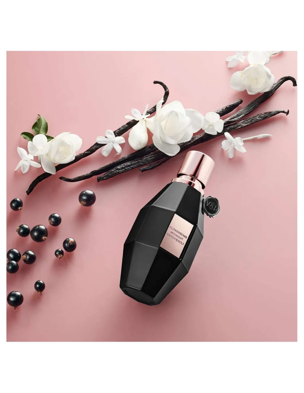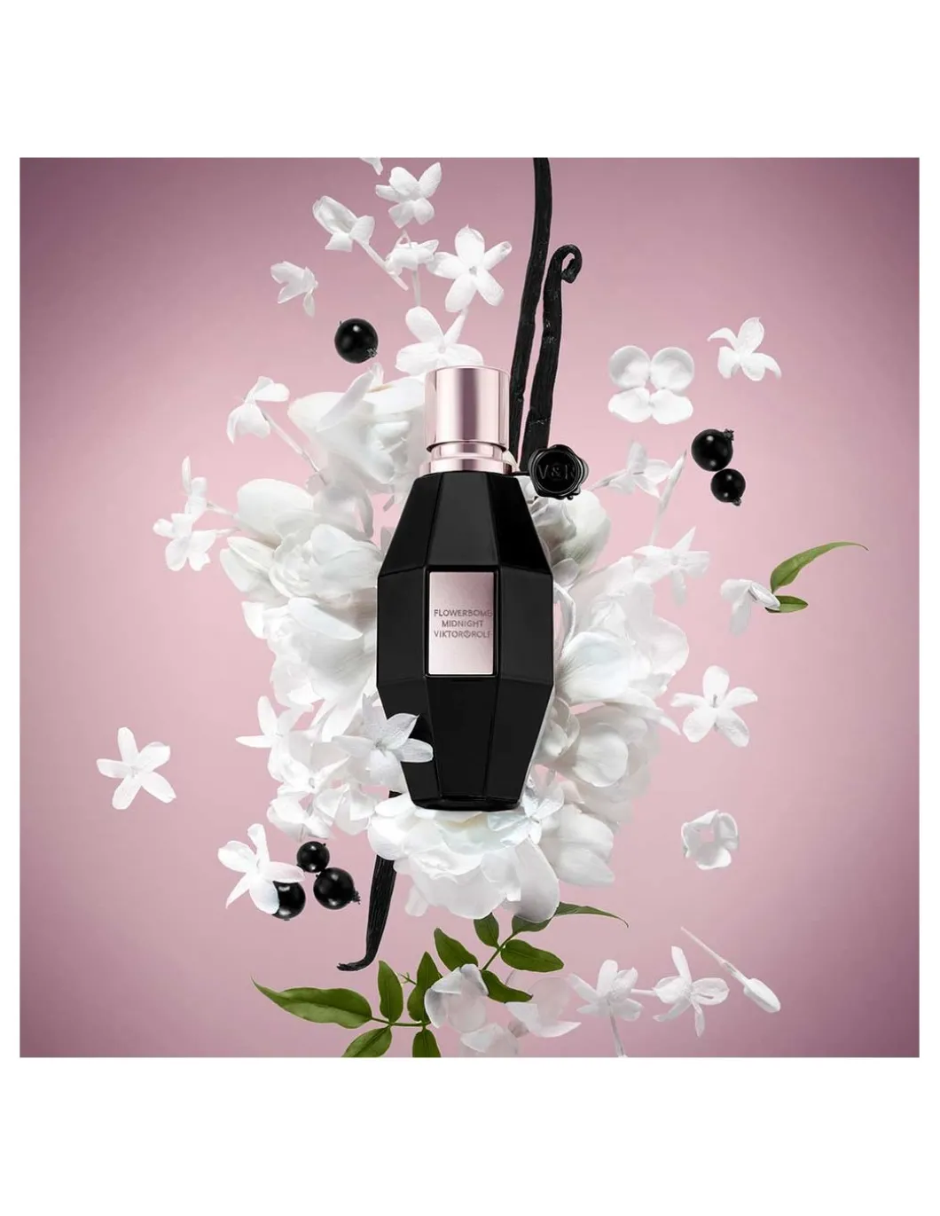 Flowerbomb Midnight es un perfume el primer perfume Chipre de la colección Flowerbomb, una bomba olfativa de sensualidad diseñada entorno al jazmín que florece de noche. También llamada «reina de la noche», esta misteriosa flor solo florece y revela su cautivador aroma al caer el día. En esta fragancia de contrastes también encontramos Grosella negra, Pachuli, Vainilla & Almizcle, para dar lugar a este perfume femenino Chipre floral afrutado.Esta nueva fragancia fue creada por Dominique Ropion, Domitille Michalon-Bertier, Carlos Benaïm y Fanny Bal.Flowerbomb Midnight, es una eau de parfum de larga duración altamente adictivo. Este nuevo aroma está envuelto en una suntuosa y radical frasco negro, una nueva gema en la familia Flowerbomb que va del rosa al negro, del día a la noche, invitando a las mujeres a descubrir un lado invisible de sus personalidades, para revelar su poder. Este color tiene mucho significado, no sólo por evocar la noche y el misterio que conlleva sino porque los diamantes negros son también los más misteriosos, se cree que tienen su origen en los meteoritos y por lo tanto son aún más difíciles de encontrar. Modo de empleo: Perfumar de forma clásica en V, comenzando en un hombro, corazón y terminando en el otro hombro.