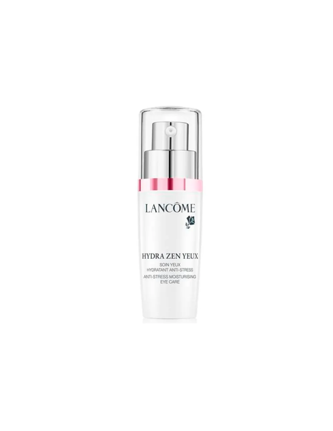 Los signos de fatiga parecen atenuados y la apariencia de las bolsas reducida. Para mujeres preocupadas por una piel deshidratada y sensible. Tecnología Complejo NeuroCalm Moringa, y cafeína, por su función anticontaminación Con extracto de hiedra y de castaño de India por sus propiedades drenantes. Contiene también microcápsulas de lipidure, ácido hialurónico y glicerina, esta última por su función hidratante. La gama Hydra Zen HYDRA ZEN es un tratamiento hidratante calmante y desestresante, que hidrata intensamente la piel y reduce la sensibilidad y el estrés cutáneo. Lancôme crea el complejo exclusivo NeuroCalm, compuesto de extractos de rosa de Francia, de mu dan pi y de moringa, para neutralizar los efectos del estrés emocional y medioambiental en la piel, aliviar y reconfortar las pieles estresadas y deshidratadas. Los tratamientos Hydra Zen contienen microcápsulas de lipidure y ácido hialurónico para proporcionar una hidratación intensa, inmediata y durante 24 horas. Su combinación de ceramidas vectorizadas y glicerina refuerzan la función barrera de la piel Modo de empleo: Aplicar Hydra Zen crema de ojos día y noche, después de la limpieza. Aplicar con ligeros toquecitos y extender con movimientos de alisado, desde el centro hacia el exterior del contorno de los ojos.