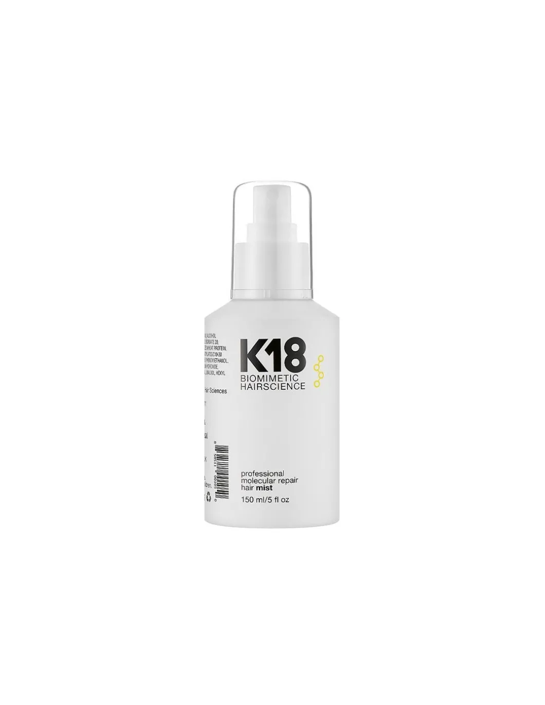 La bruma profesional molecular K18 hair mist es una parte del tratamiento en el salón que se hace junto a la mascarilla K18 Professional Mask. La bruma molecular hace que el cabello quede lo suficientemente fuerte para aguantar los daños al realizar los servicios de color y decoloración. La composición de pH de 7,5 a 8,0 ayuda a desplazar la capa de la cutícula entrando en el córtex del cabello ayudando a reconstruir las zonas más dañadas.