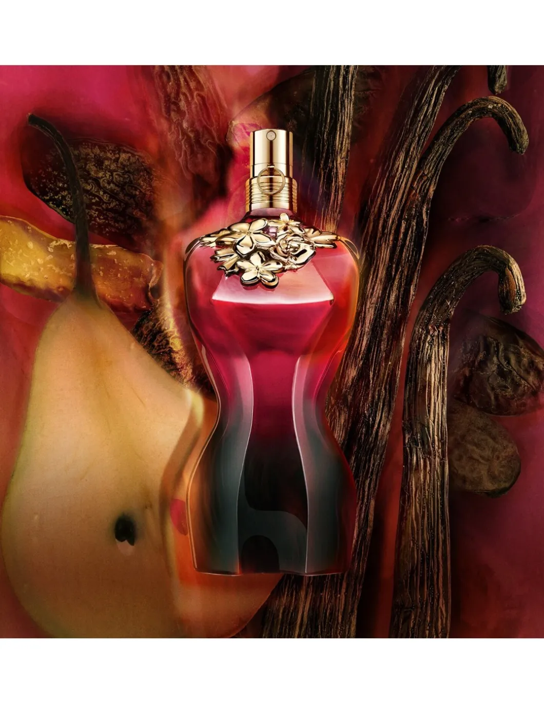 Fruta prohibida con curvas del color rojo oscuro para mayor intensidad, su feminidad se adorna con un collar del rosas doradas. Y bajo el sol centelleante del está densa vegetación, su Eau del Parfum Intense Oriental Gourmand embriaga del elegancia los sentidos. ¡Cede a la tentación!.