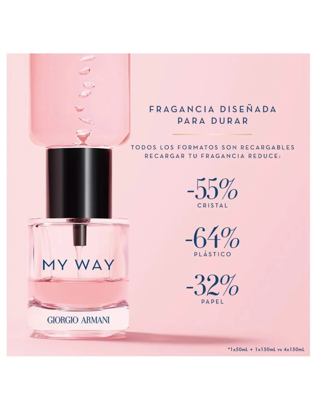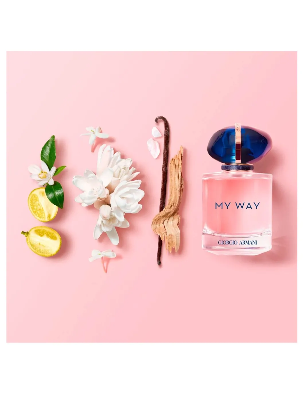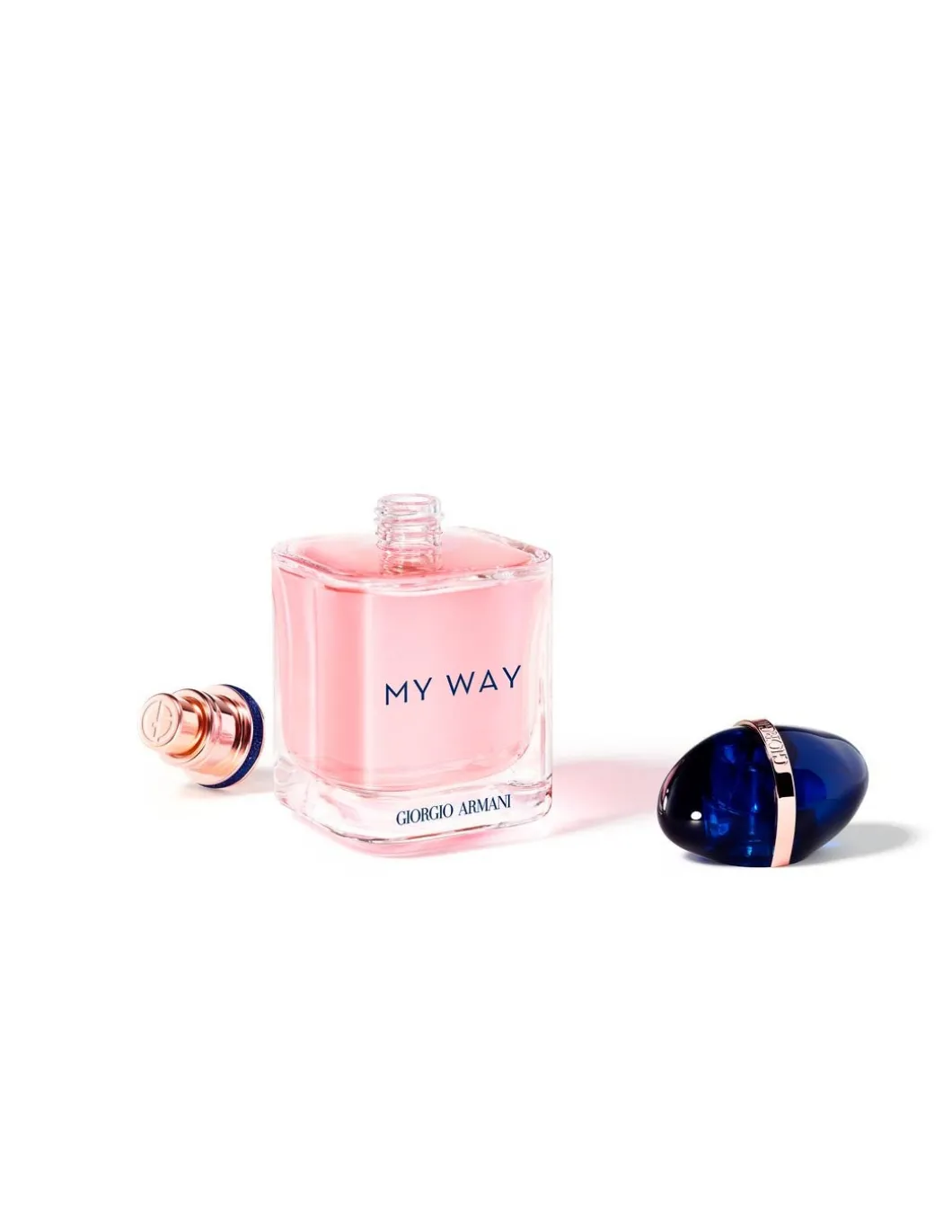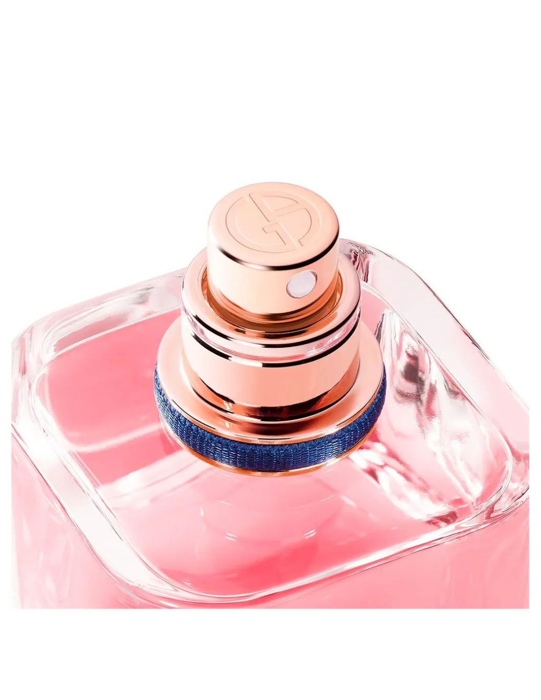 El frasco encapsula el conjunto de experiencias que te hacen ser como eres; es el talismán que siempre te acompaña y captura los recuerdos vividos. El tapón azul es una metáfora del mundo que nos une a todos; abrazado por un anillo dorado con la firma de Giorgio Armani, que no solo le confiere ese aspecto de joya a nuestro talismán, sino que simboliza el camino que cada mujer va tomando en su vida. Un perfume con un propósito: