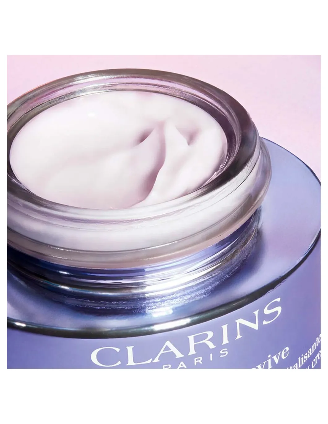Resalta la vitalidad que sientes en tu interior con el nuevo aliado para las pieles maduras. Clarins Nutri-Lumière Revive Todas Las Pieles es un tratamiento 2 en 1 de nueva generación antiedad y embellecedor. Diseñada para todas las mujeres a partir de los 60 años cuya piel carece de vitalidad y que están preocupadas por la falta de luminosidad y por el tono amarillento de la piel. Formulado con más de 10 potentes extractos de plantas que nutren intensamente, reafirman, redensifican y restablecen al instante la luminosidad de la piel. La flor y la escina del castaño de Indias actúan sobre la red micronutritiva para nutrir la piel desde el interior. El nuevo extracto de caqui protege de la glicación, efecto que causa el tono tenue de la piel y la perdida de firmeza. Su ligera textura crema en aceite violeta está enriquecida con nácares iluminadores con efecto luminosidad inmediata muy natural. De fácil absorción, deja la piel jugosa de efecto inmediato. Un perfume fresco y floral delicadamente afrutado. Beneficios: Al instante, el tono amarillento de la piel se neutraliza, la piel está más bonita; está hidratada, nutrida y recobra su luminosidad. Día tras día, la piel está revitalizada y fortalecida. Se ve más joven y saludable. Los signos de la edad se atenúan, la firmeza se mejora y las manchas se minimizan. Consejos de aplicación: Su aplicación debe hacerse en las mañanas sobre el rostro y cuello con la piel limpia y seca: Calentar la crema en las manos; a continuación, posar desde el centro del rostro y del cuello hacia los lados. Seguidamente, aplicar mediante presiones igualmente desde el centro hacia los lados para no desplazar los tejidos, favorecer el drenaje y, así, preservar la juventud de los rasgos.