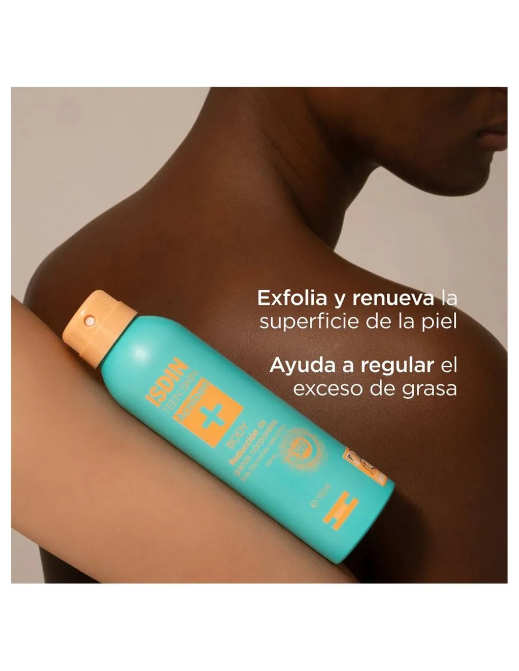El spray corporal de secado rápido reduce granos en la espalda, hombros, y pecho.