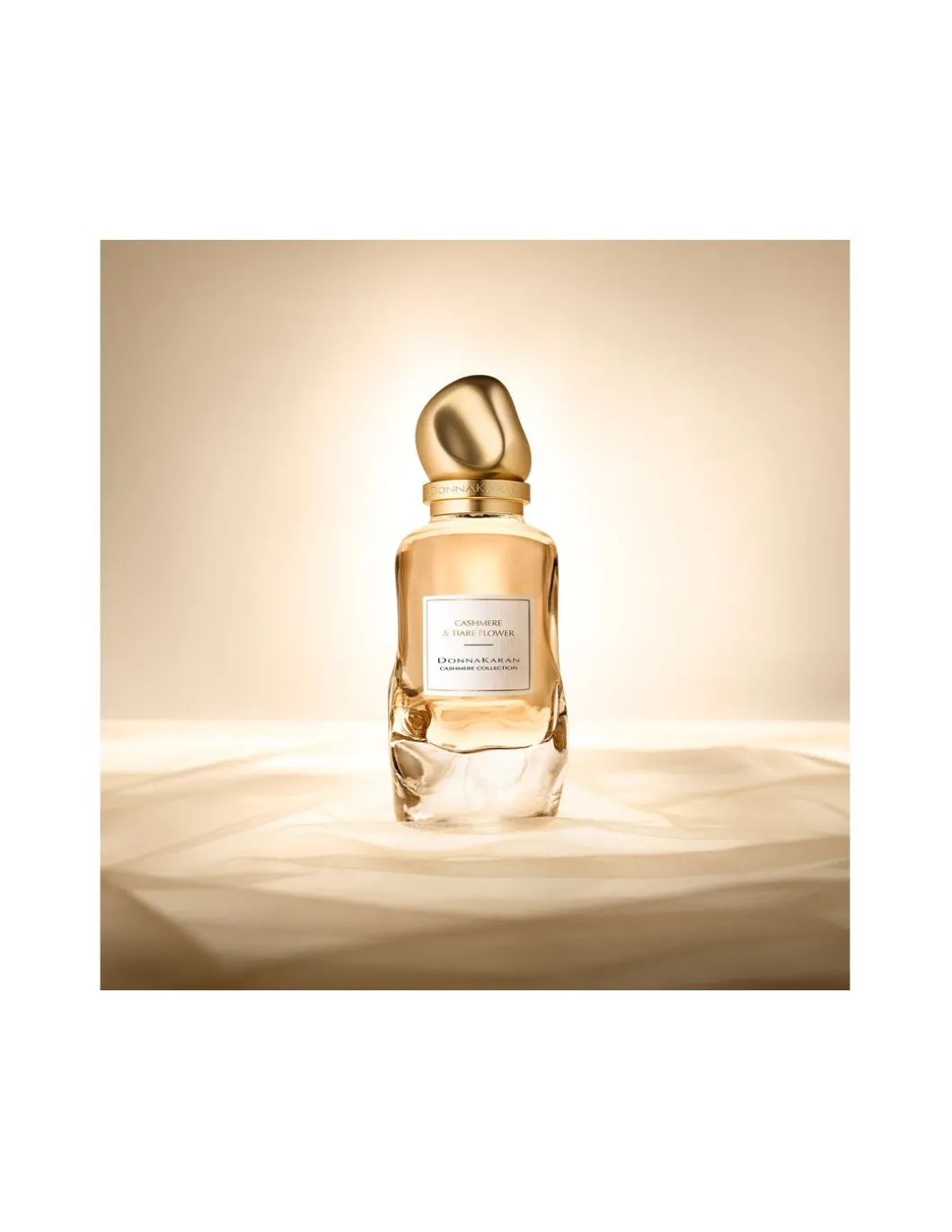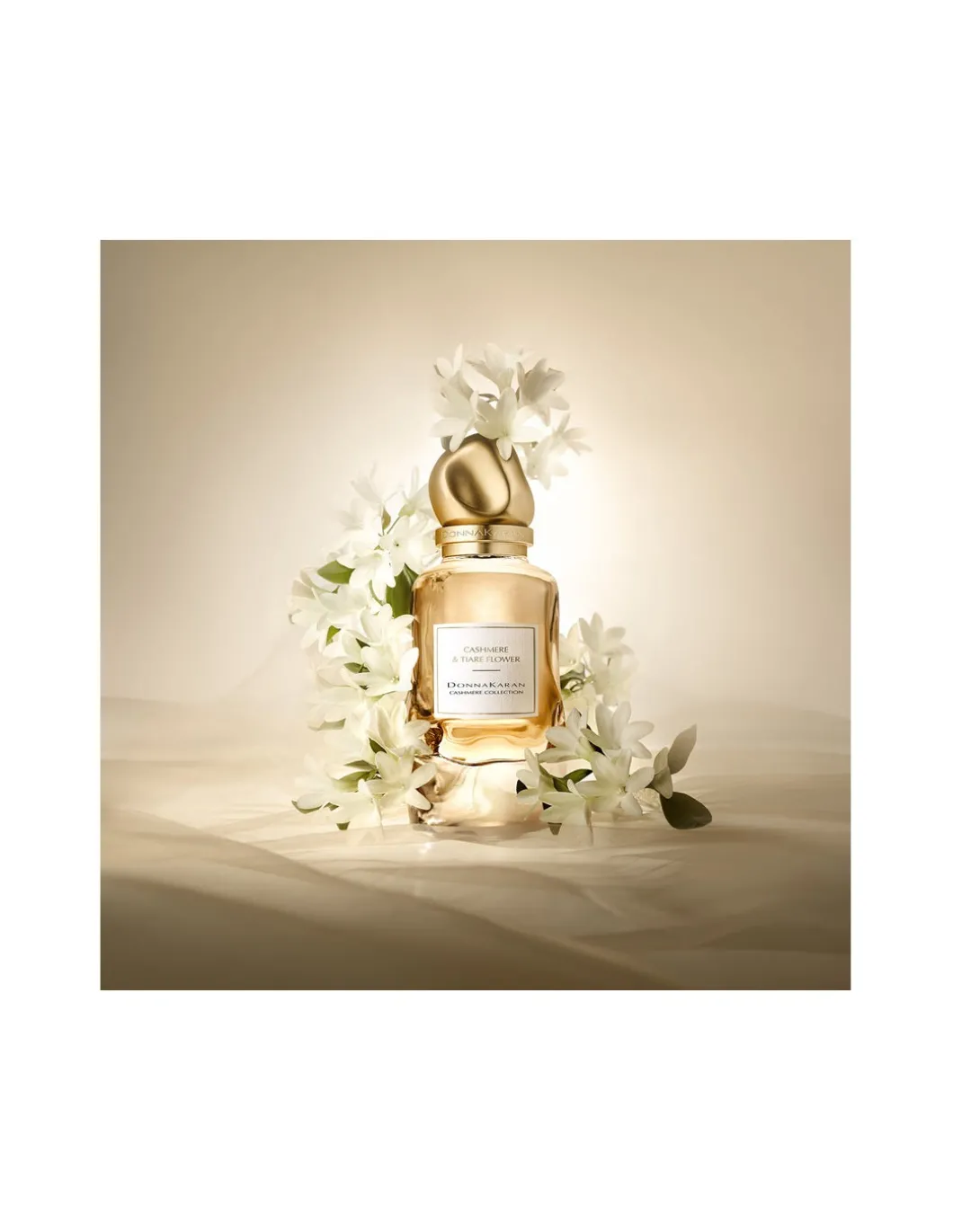 Donna Karan Cashmere Collection Cashmere & Tiare Flower es una fragancia floral solar luminosa para ella que le da un giro sofisticado a la frescura tropical. Yuxtapone notas florales suaves con notas amaderadas con un matiz ambarado. “Esta es una composición floral solar moderna donde la calidez y el envolvente ámbar resaltan la comodidad de la cachemira, mientras que el vetiver agrega una sofisticada faceta mineral y amaderada a la fragancia. Esta firma segura y memorable aporta novedad a la marca Donna Karan a través de un encantador toque floral solar”, dicen los perfumistas Jacques Huclier y Nathalie Cetto.