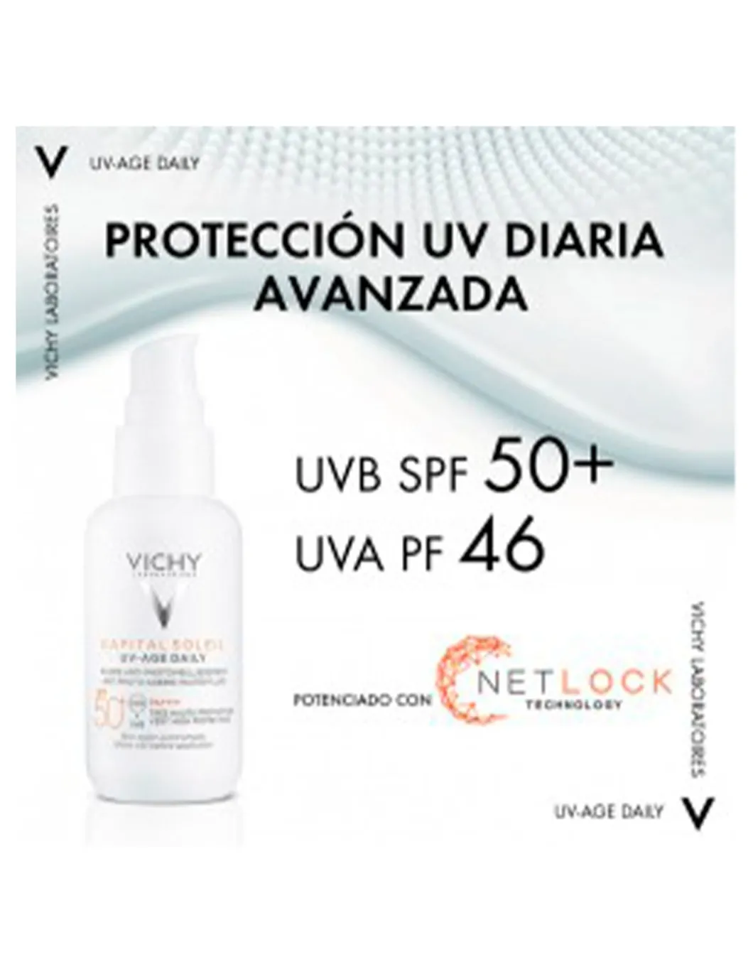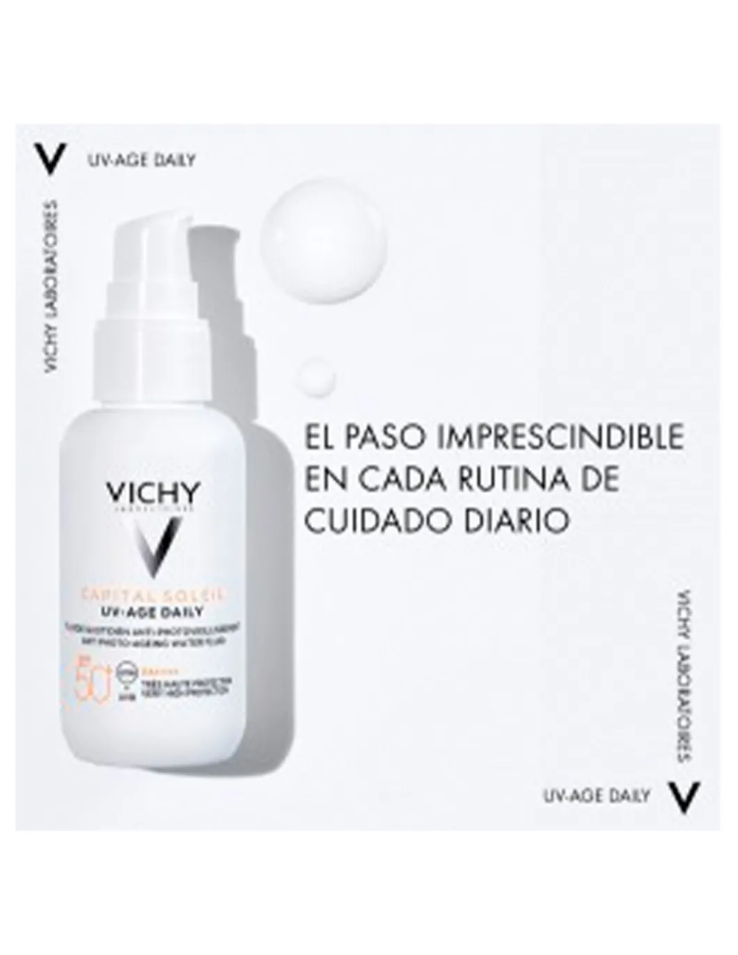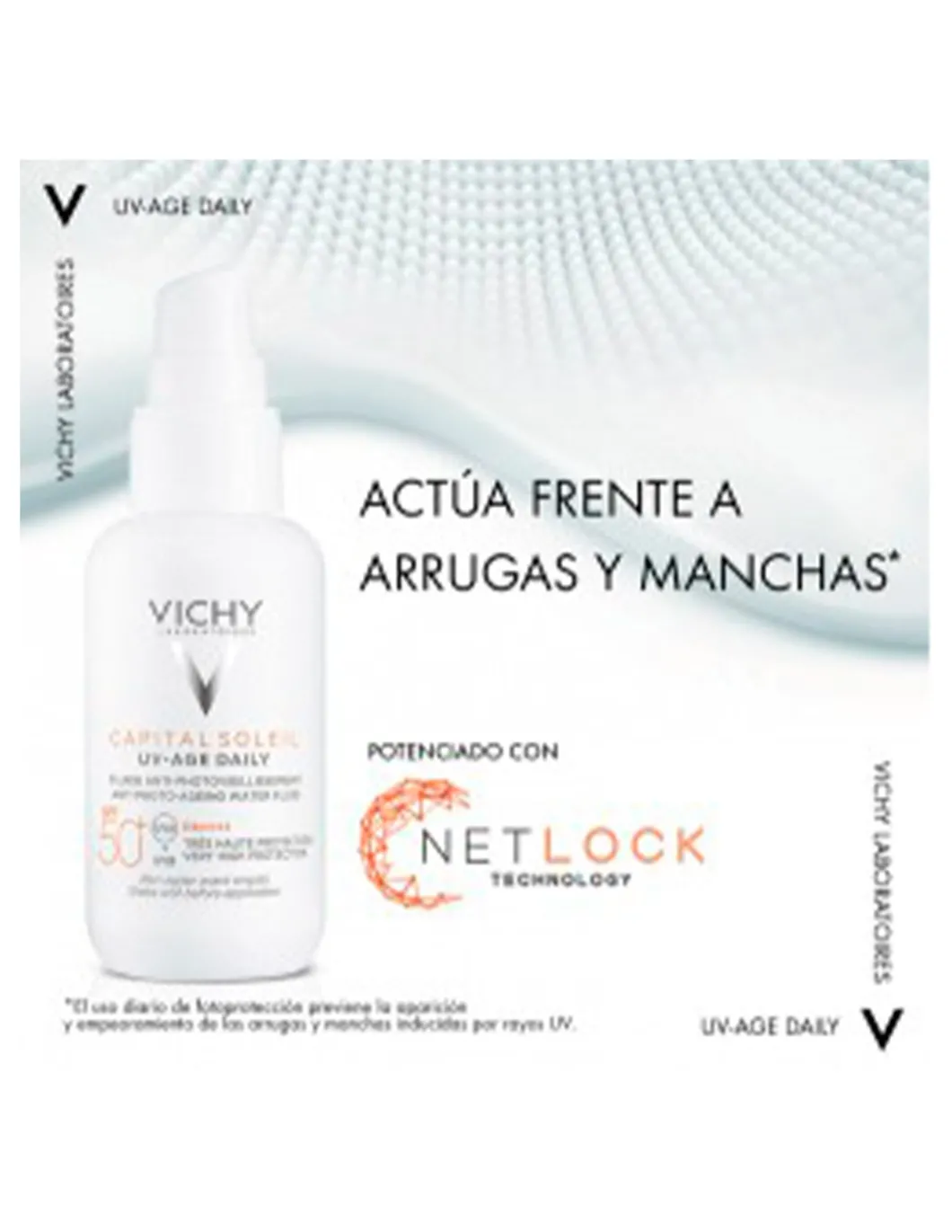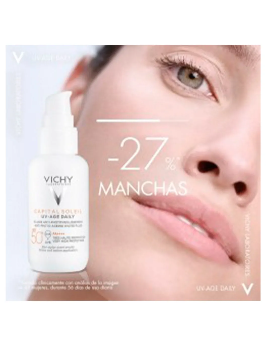 Vichy Capital Soleil UV-Age Daily SPF50+ Water fluid es ideal para proteger, prevenir y corregir manchas del rostro.