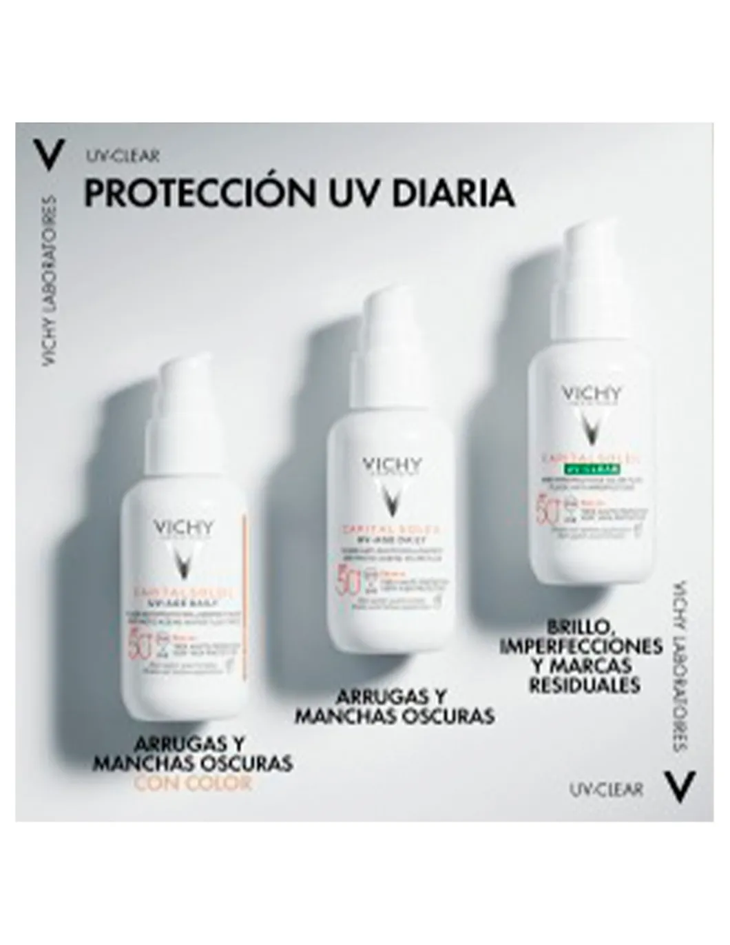 Vichy Capital Soleil UV Clear ha sido formulado para corregir las imperfecciones, proteger de los rayos UVA y UVB y matificar las pieles mixtas a grasas con tendencia acneica.
