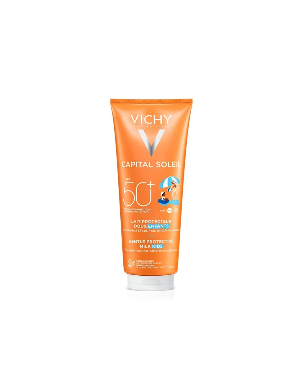 Para combatir los efectos nocivos de los rayos UV y proteger el preciado capital genético de la piel, los Laboratorios Vichy integran a la Leche solar Niños un sistema filtrante de amplio espectro UVA-UVB y fotoestable con Mexoryl.