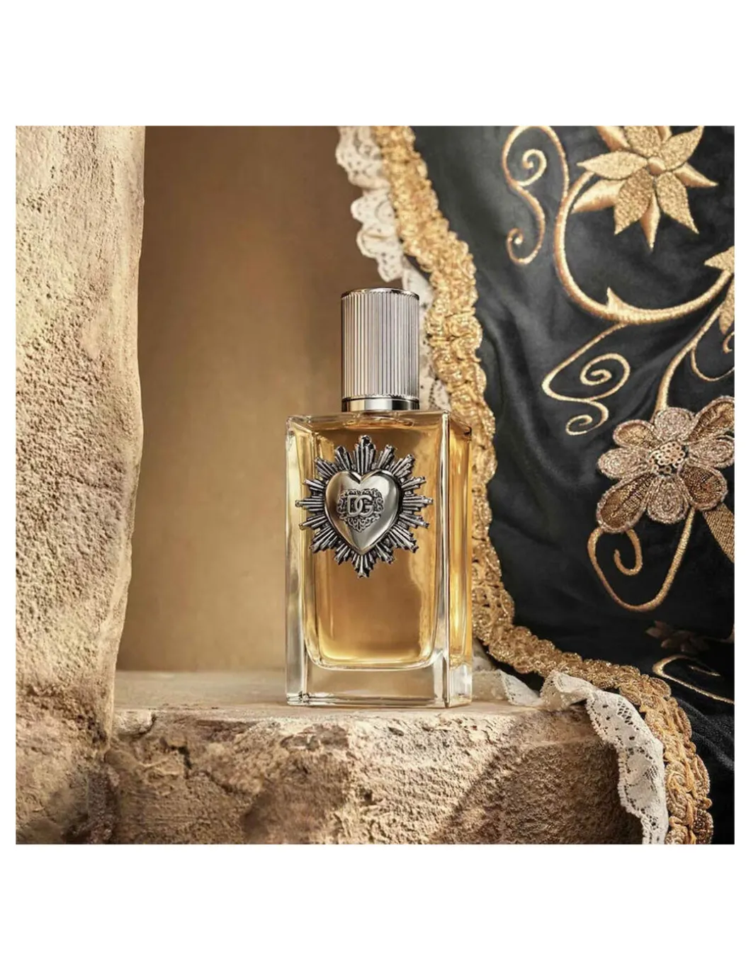 Dolce & Gabbana Devotion Pour Homme Eau de Parfum celebra la devoción inquebrantable e incondicional, el poder del amor y la alegría de vivir. La fragancia, basada en el eterno Sagrado Corazón, refleja la esencia de un hombre decidido, guiado por sus instintos. La fragancia fue creada por Olivier Cresp exclusivamente para Dolce & Gabbana.