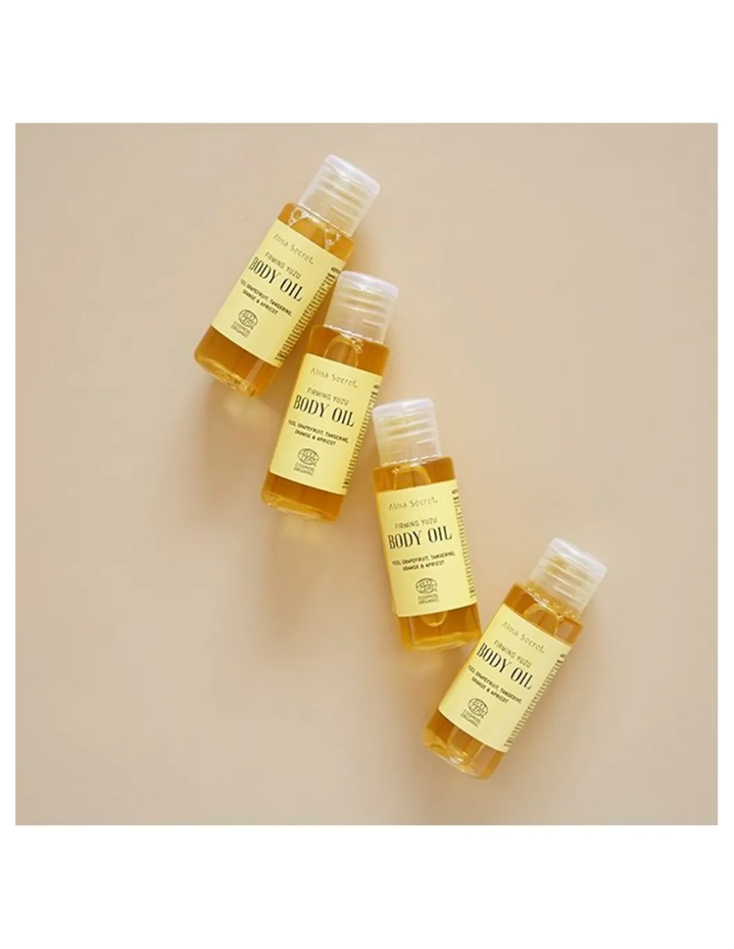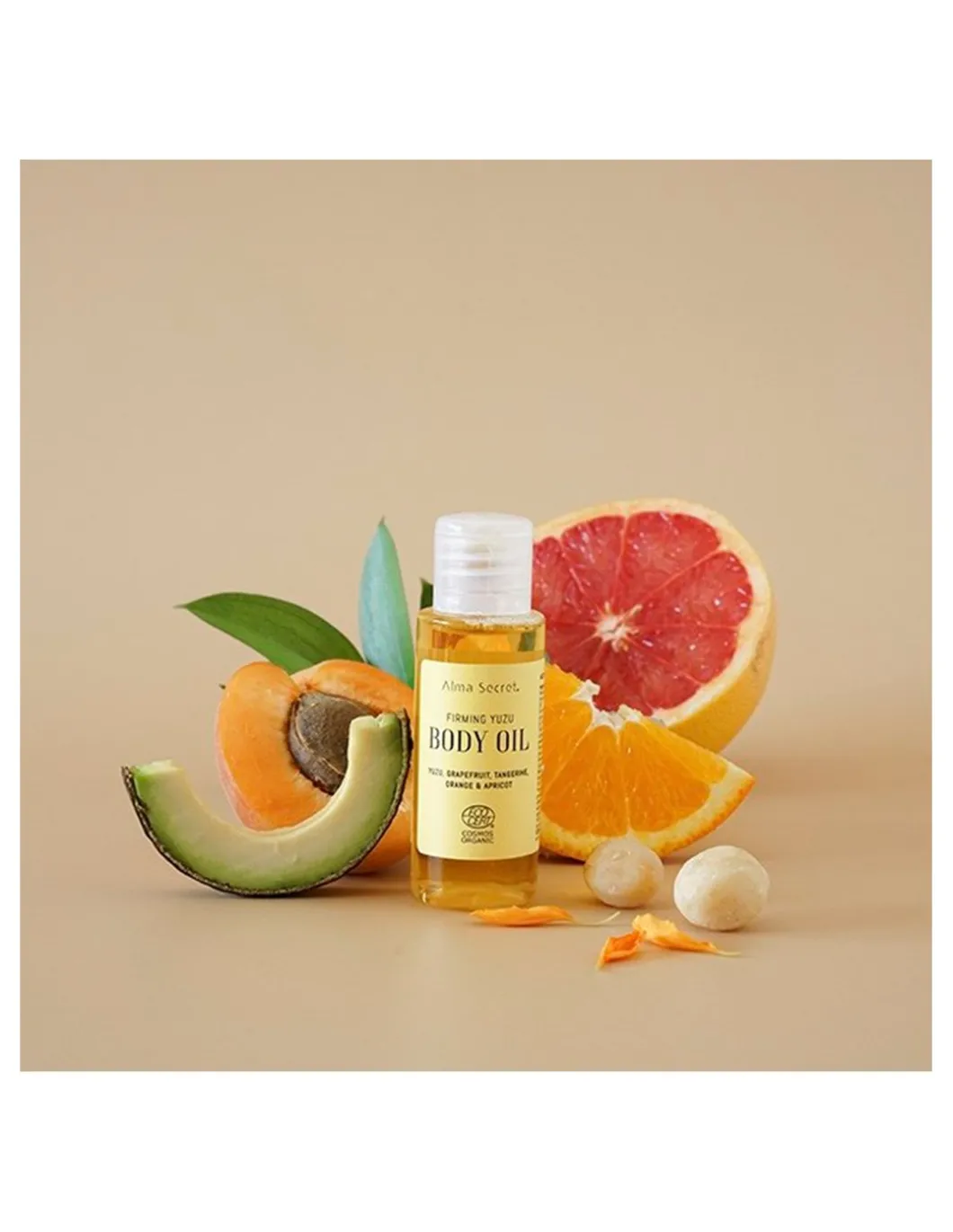 Contiene aceite esencial de Yuzu, una superfruta que destaca por encima de otros cítricos por su mayor contenido en vitamina C y su alta capacidad antioxidante. Es conocida como “El fruto de la belleza” o “la fruta más sexy del mundo”, perfecta para enriquecer este aceite corporal único con propiedades para tensar la piel, tonificarla y devolverle la luminosidad.