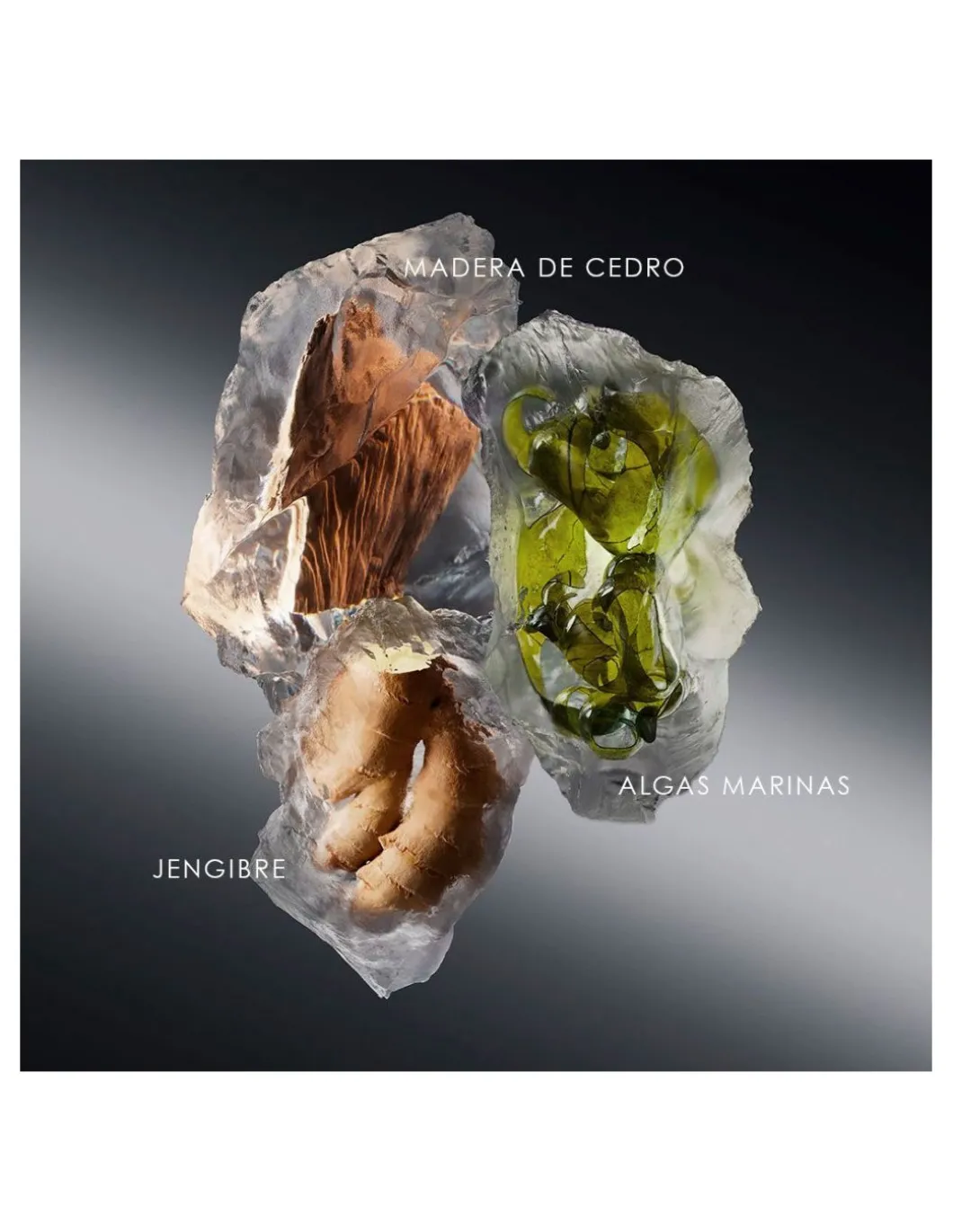 • Inspirado en la sal, el gris claro del pack exterior combina el perfume con la pureza de su tono natural. Por primera vez, la caja contiene un 10 % de algas recicladas de origen natural, junto con material procedente de bosques gestionados con certificación FSC™ y otras fuentes controladas. Su textura mate recuerda a la superficie táctil de los cristales de sal.