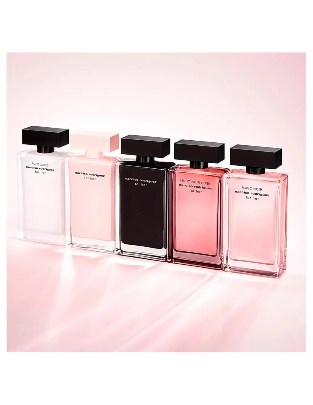Descubra el arte de la estratificación con la colección icónica de fragancias For Her de Narciso Rodríguez.