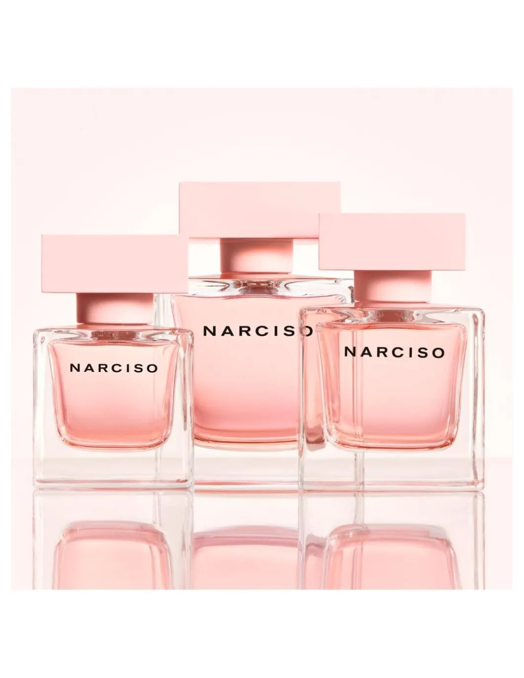 El frasco icónico de NARCISO aparece en su forma más pura, el cristal transparente coloreado de rosa pálido para revelar la luminosa fragancia que contiene. Acabado con un tapón rosa mate en contraste, el precioso objeto desprende la misma luminosidad cautivadora que la mujer NARCISO.