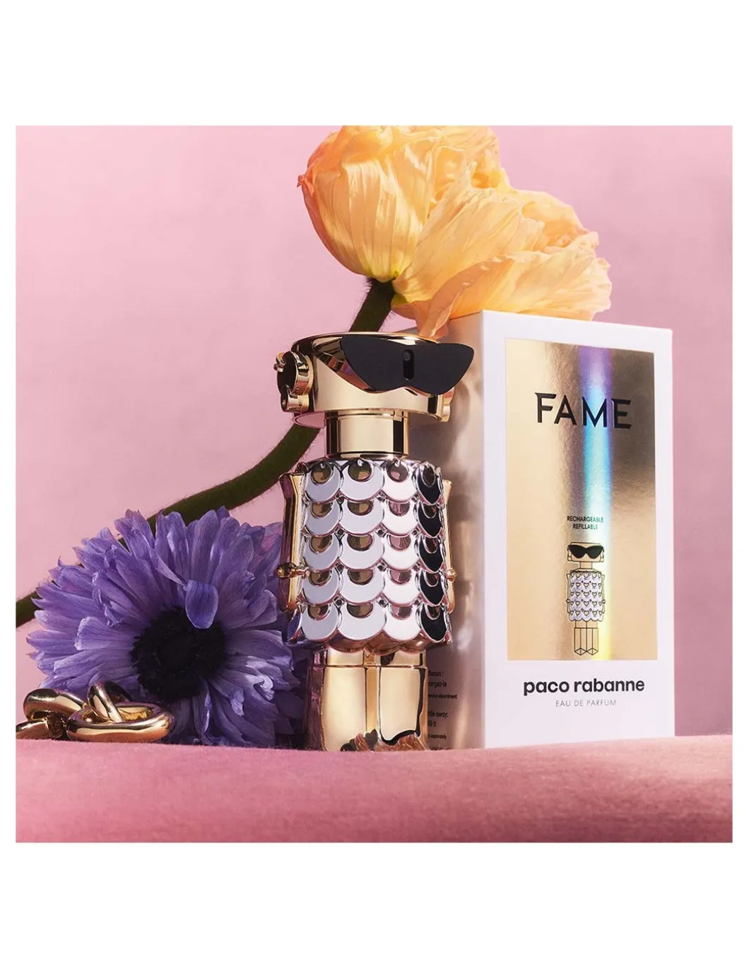 Descubre Fame, la nueva y más deseada fragancia para mujer: un futuro icono de Paco Rabanne. El perfume Fame está inspirado en el irresistible espíritu parisino de la mujer Paco Rabanne, mientras que rinde homenaje a una nueva era de feminidad.