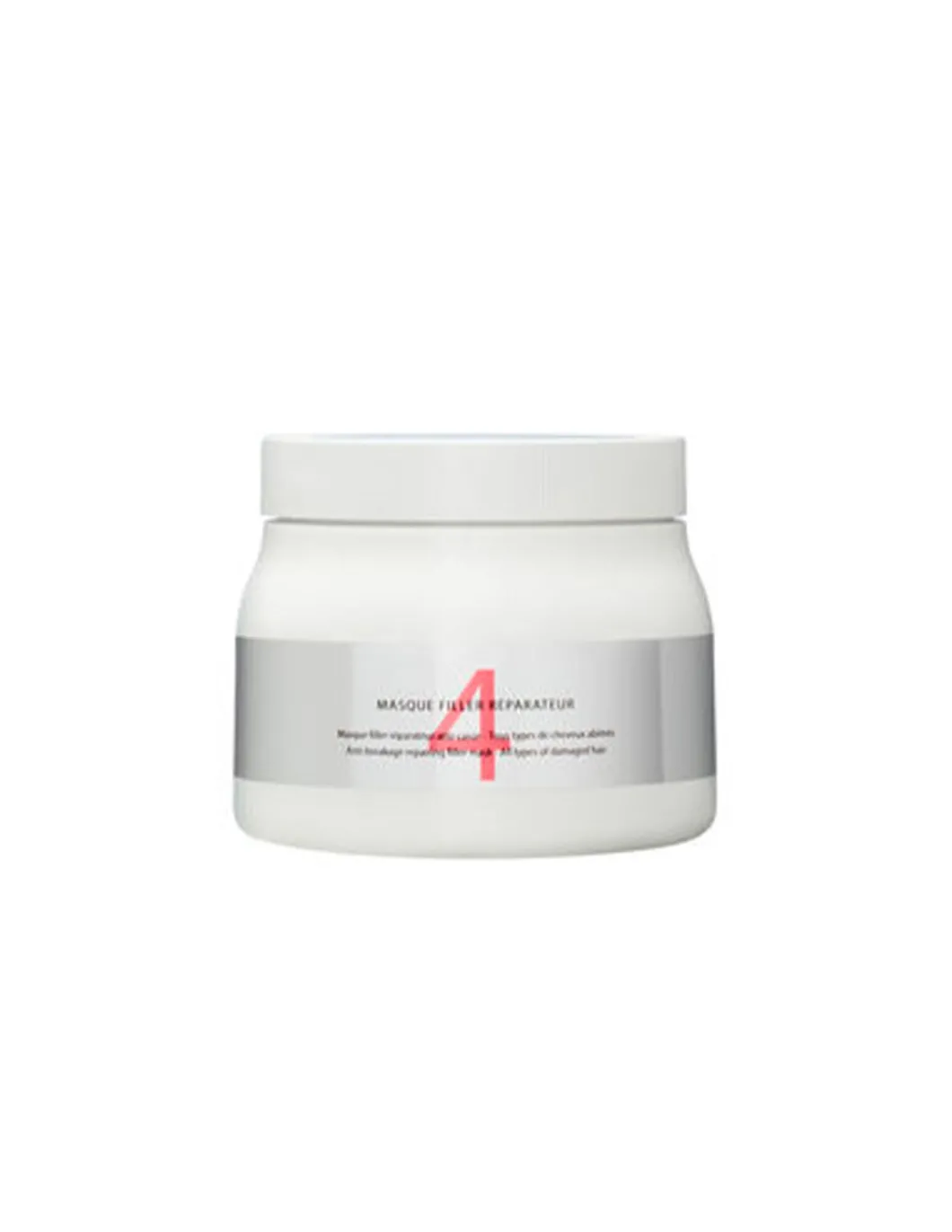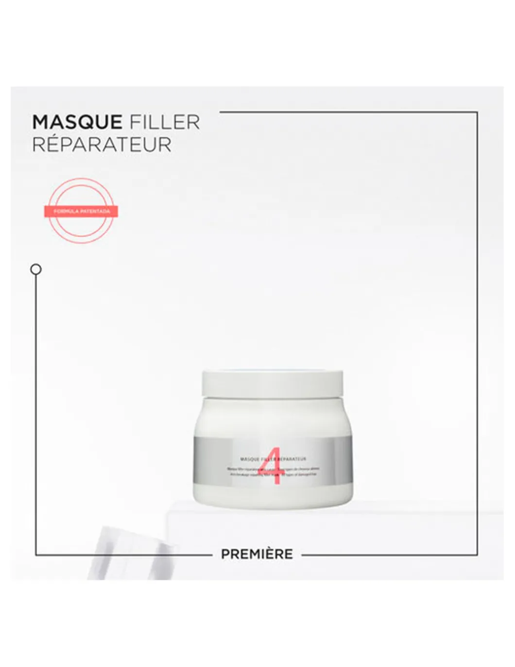 Masque Filler Réparateur es un tratamiento reparador anti-rotura para todo tipo de cabello dañado. Su rica textura penetra intensamente en la fibra para nutrirla, repararla y devolverle su fuerza desde el interior. Reconecta los enlaces de queratina dañados y recrea el 99% de su fuerza original.