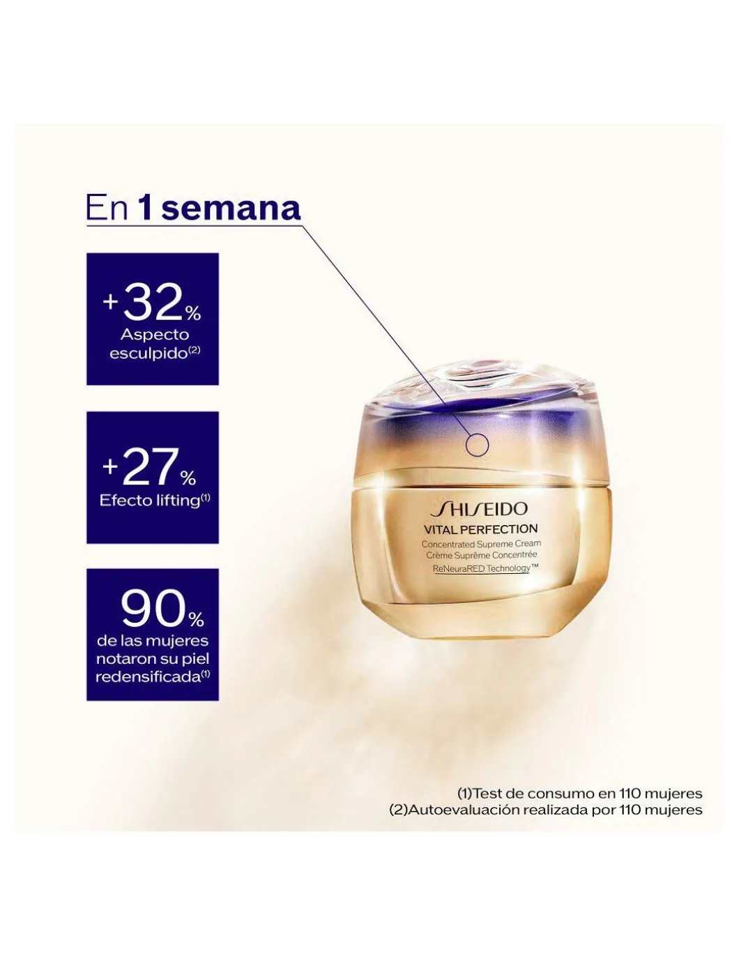 Shiseido Concentrated Supreme Cream corrige la flacidez de la piel y la pérdida de densidad gracias a su fórmula enriquecida con tres tecnologías: