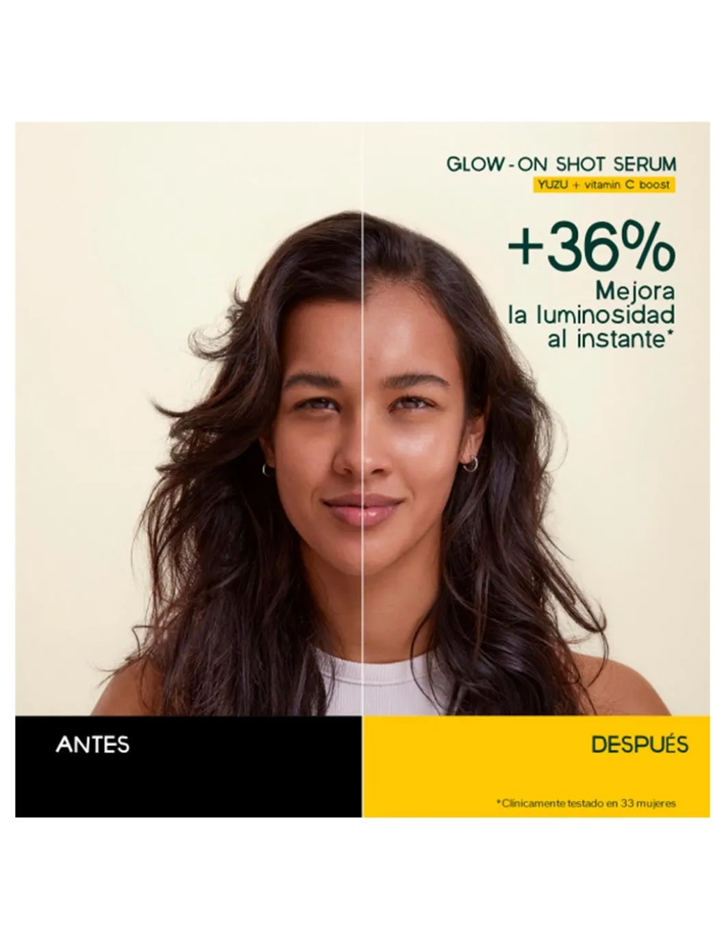 Waso Yuzu-C Glow-On Shot de Shiseido es un sérum bifásico que hidrata y aporta luminosidad a la piel del rostro. Este sérum bifásico de formulación vegana contiene un 98% de activos de origen natural que hidratan intensamente la piel de rostro proporcionando intensa hidratación y luminosidad, gracias a la combinación del poder revitalizante y antioxidante de la vitamina C del extracto del yuzu japonés. De textura bifásica ligera, se distribuye y absorbe fácilmente. Puede utilizarse sólo o antes de la crema de tratamiento habitual. Recomendado para unificar el tono, mejorar la hidratación y la luminosidad de todo tipo de piel. Con Shiseido Waso Yuzu-C Glow-On Shot se favorece el aumento de luminosidad en un 36%, la mirada luce más fresca, vital y radiante.