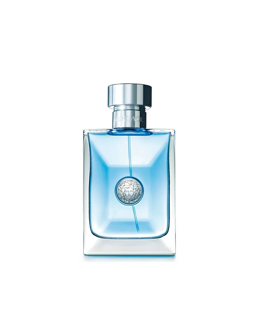 El frasco de Pour Homme Versace en un homenaje a la fortaleza de líneas sobrias, su vidrio compacto y transparente permite percibir el tono azulado y elegante que guarda en su interior. Sellado en el centro se aprecia el icono de Versace, la Medusa de la mitología griega. El cuello reforzado está grabado con la firma, coronado con un tapón robusto, metalizado y resplandeciente.