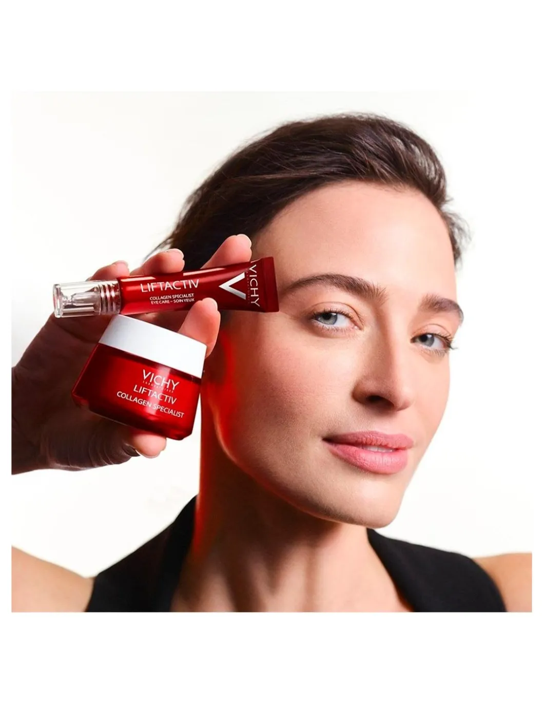 El nuevo Contorno de Ojos Antiarrugas y Antiedad Collagen Specialist, con un Complejo Pro-Colágeno único [Péptidos + Proxylane + Vitamina CG] actúa sobre el contorno de los ojos para una corrección 360º.