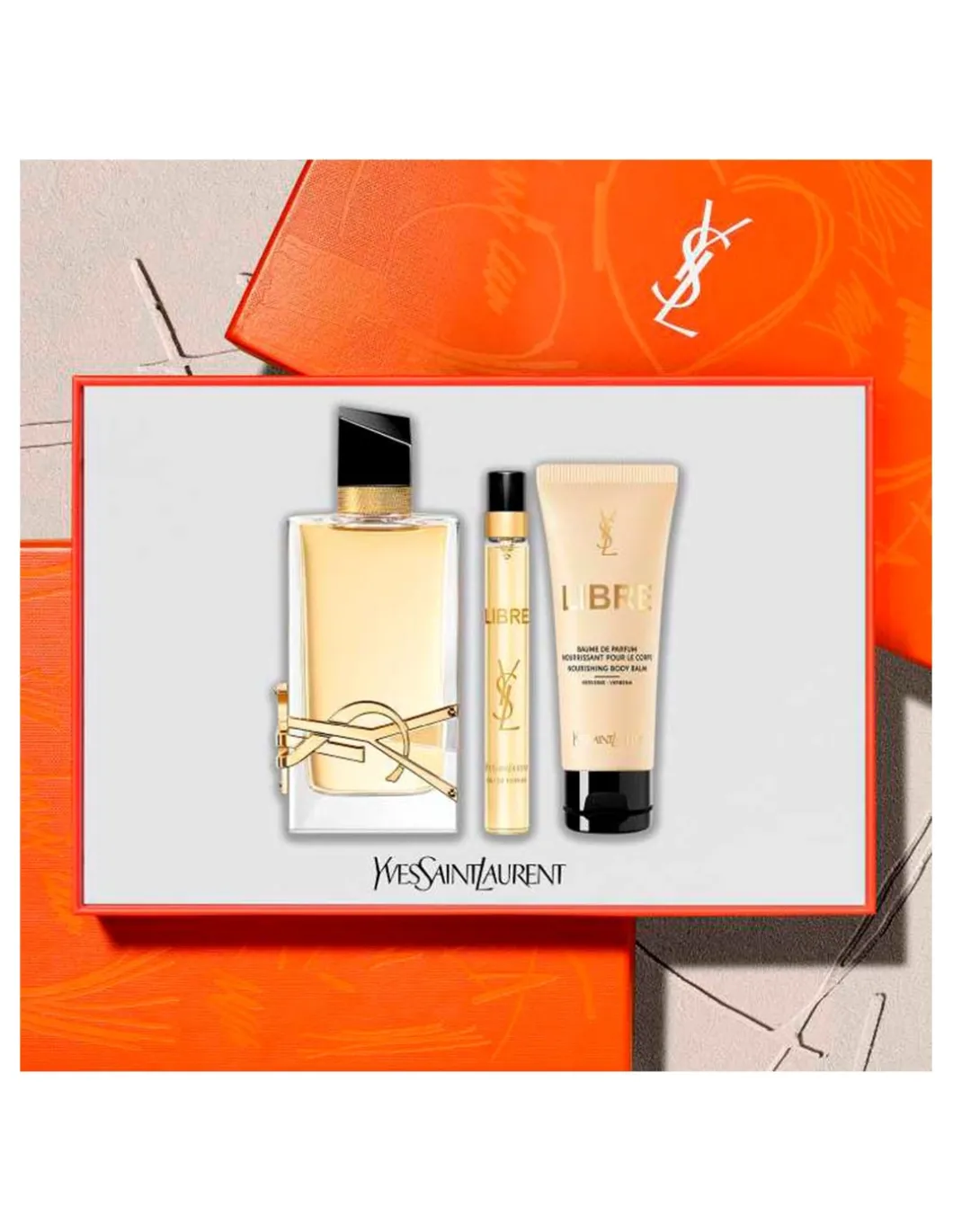 Estuche compuesto por: Yves Saint Laurent Libre Eau de Parfum 90ml + YSL Libre locion corporal perfumada 50ml + Yves Saint Laurent Libre Eau de Parfum mini 10ml.