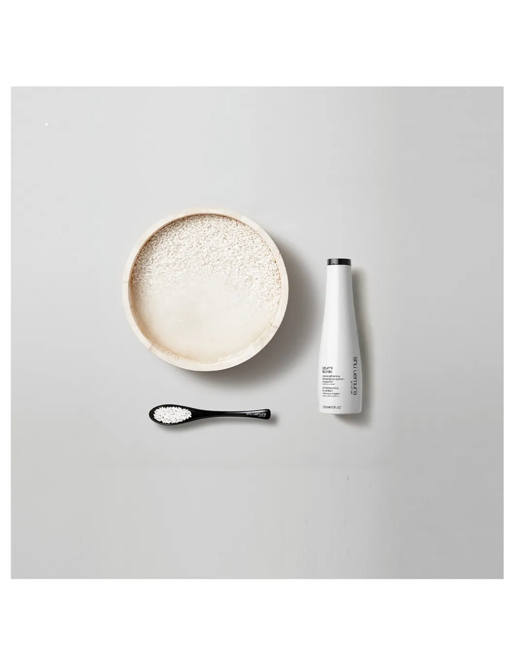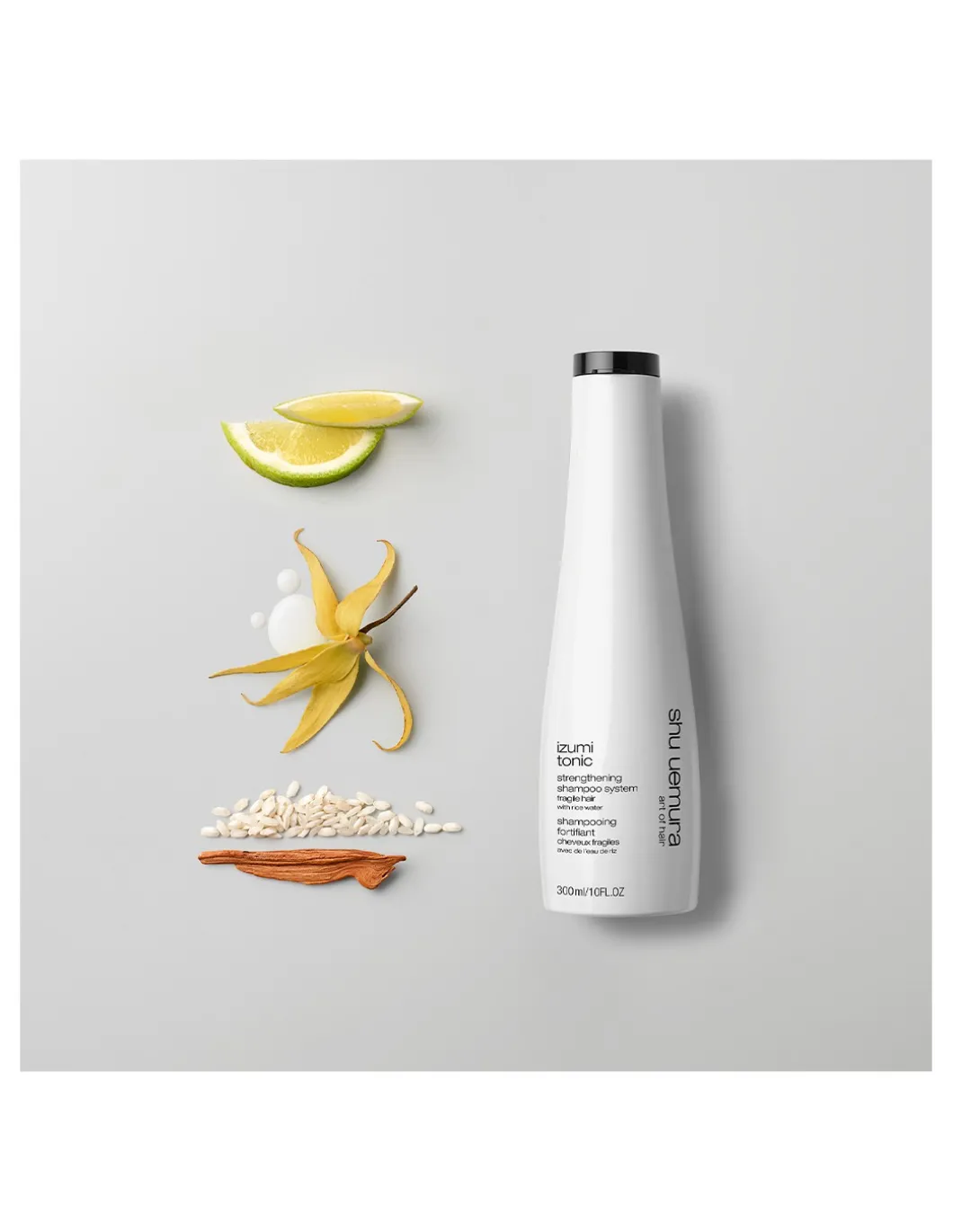 Izumi – fuente en japonés – tonic está inspirada en la tradición japonesa de belleza capilar yu-su-ru, que consiste en bañar el cabello en agua de arroz. Esta fórmula ligera, utilizada en la gama de izumi tonic, limpia suavemente, fortalece y aporta densidad al cabello. Resultado de cabello 30 veces más fuerte, más grueso, protegido de la rotura y con puntas abiertas reducidas hasta en un 91%*. El cabello queda suave, liso y lleno de luminosidad. Aplicar sobre el cabello mojado, masajear y aclarar. Terminar con acondicionador o mascarilla izumi tonic y sérum izumi tonic. *Tests instrumentales con champú + acondicionador + mascarilla.